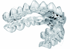 Die einfache und schnelle LösungDurch das Tragen einer Kunststoffschiene während des Schlafens wird der Unterkiefer vorn und somit der Atemweg frei gehalten.